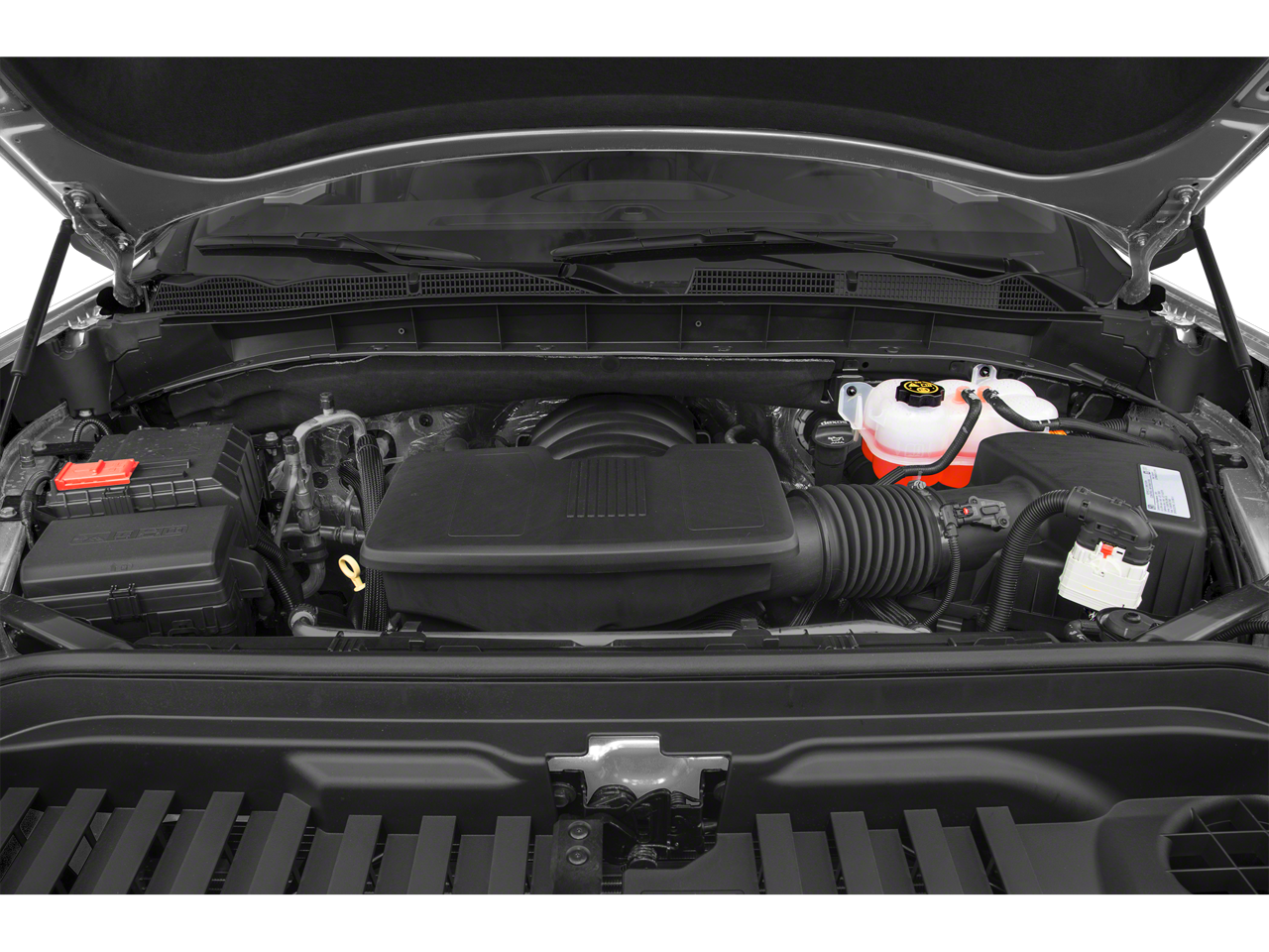 Windows, power front, drivers express up/down, Window, power front, passenger express up/down, Wheels, 18 x 8.5 (45.7 cm x 21.6 cm) 6-spoke machined aluminum with Dark Grey Metallic accents, Wheelhouse liners, rear, Wheel, 18 x 8 (43.2 cm x 20.3 cm) full-size, steel spare, USB ports, dual, charge-only (2nd row), USB Ports (Instrument Panel with bench seat), 2 also includes 1 SD card reader (first row) With bucket seats, USB Ports are located inside console and includes auxiliary jack, Transmission, 8-speed automatic, electronically controlled with overdrive and tow/haul mode. Includes Cruise Grade Braking and Powertrain Grade Braking (Standard on models equipped with (L84) 5.3L EcoTec3 V8 engine.), Transfer case, single speed, electronic Autotrac with push button control (4WD models only), Trailer brake controller, integrated.